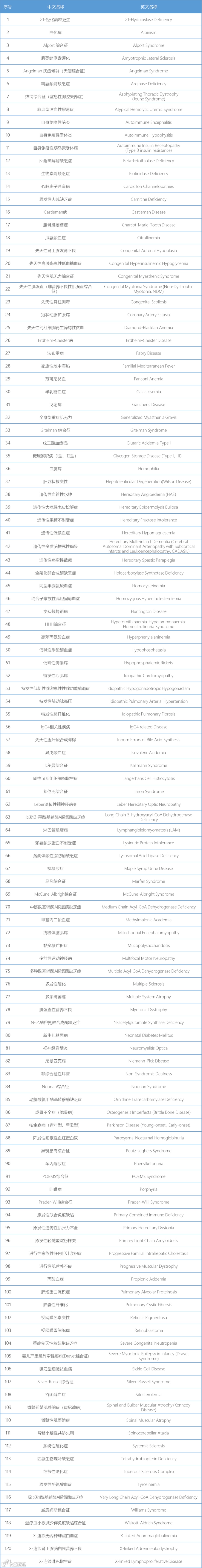 第二批罕见病目录