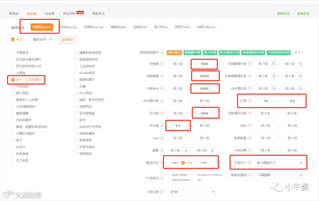给你们展示一下,我是如何用它进行选品的,以及我的指标设定。