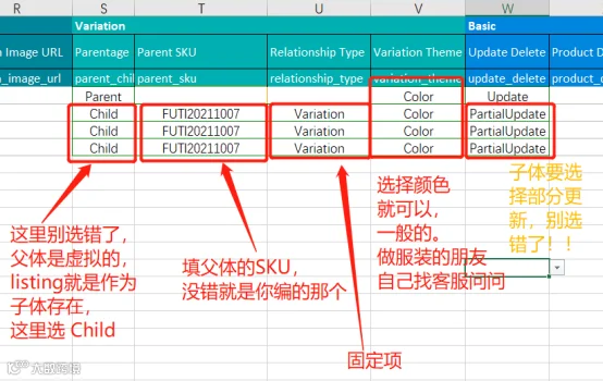 子体是需要选择部分更新 " PartialUpdate ",这个很重要。因为选择这个,才可以保留好你的原Listing信息。