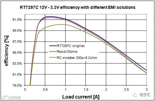 图24:使用RC平滑抑制电路和RBOOT电阻对效率的影响