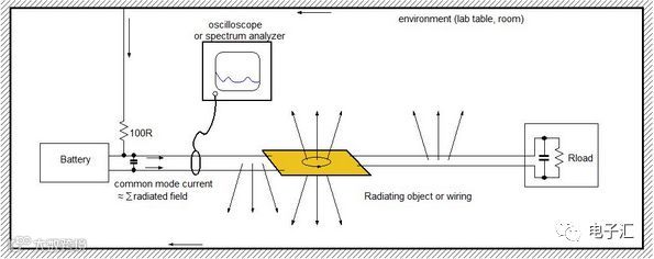 当被测设备置于实验台时,PCB回路和导线会向周围辐射高频能量,形成反馈路径并表现为供电线上的共模电流,可用于评估辐射水平。