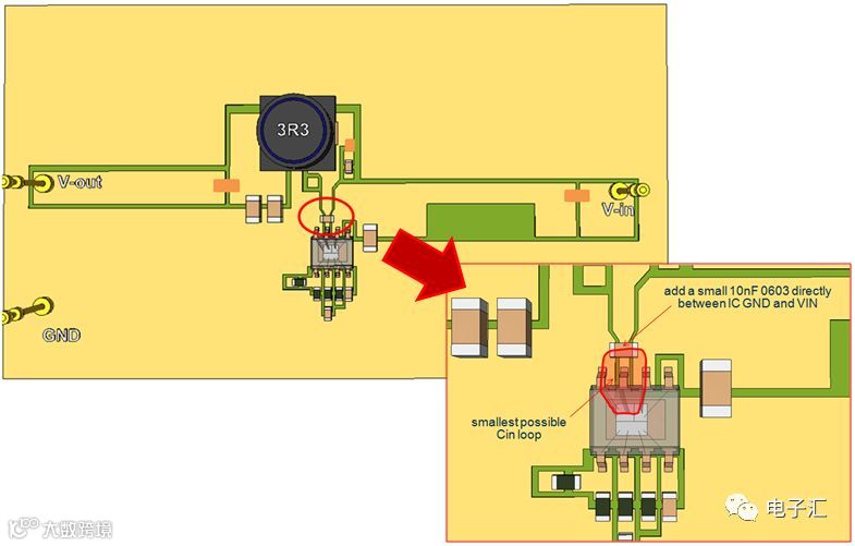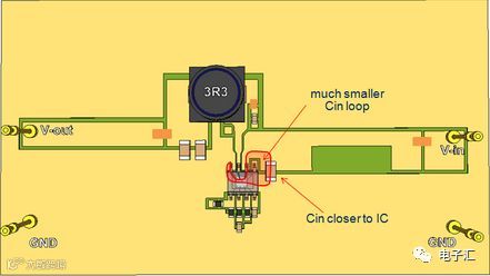 保持单面板结构,将CIN移至IC附近,减小回路面积(图9)。