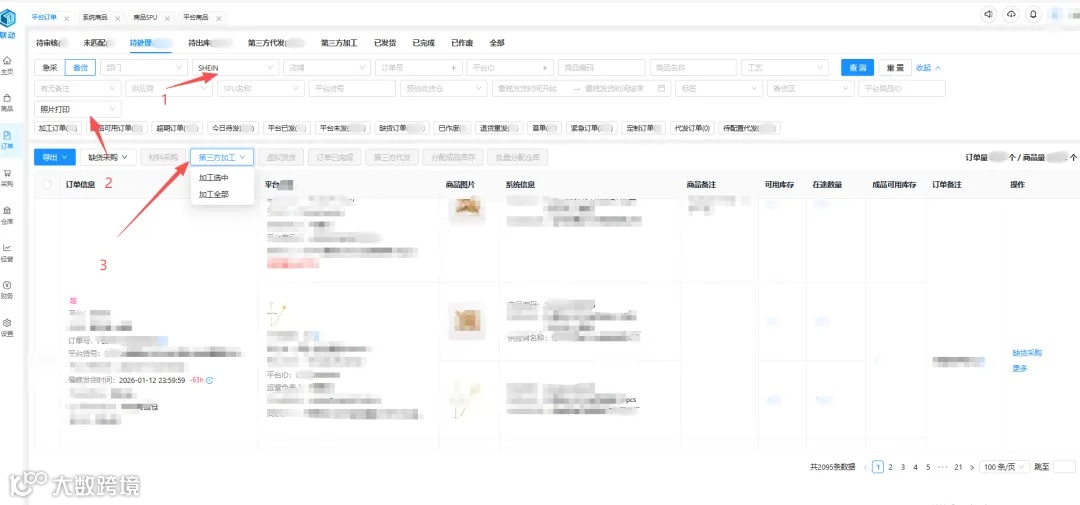 在联动ERP系统的【订单】模块中找到【平台】,选择【SHEIN】;