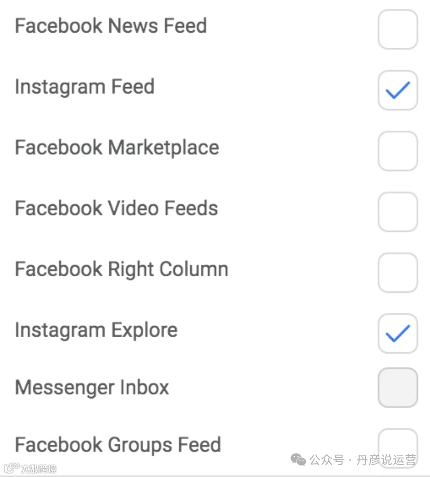 - 手动展示位置:适合只想在 Instagram 投放的情况