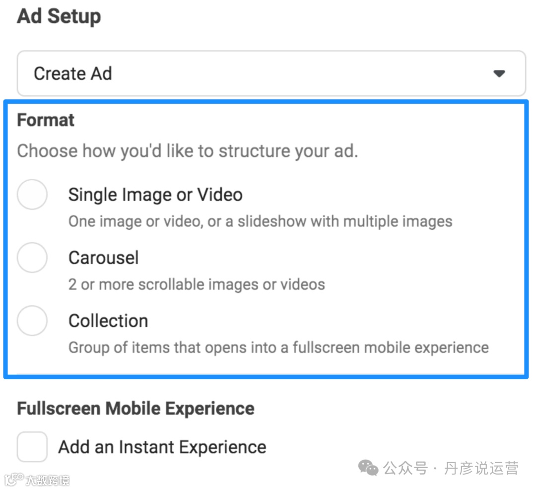 准备好账户连接后,进入广告创作环节,需选择广告格式并上传相应素材内容(图像、视频)及文案信息。