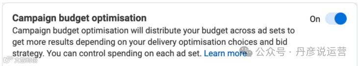 你还可以开启“广告系列预算优化”选项,由 Facebook 的算法智能分配不同广告组和平台间的预算,以实现最佳效果。