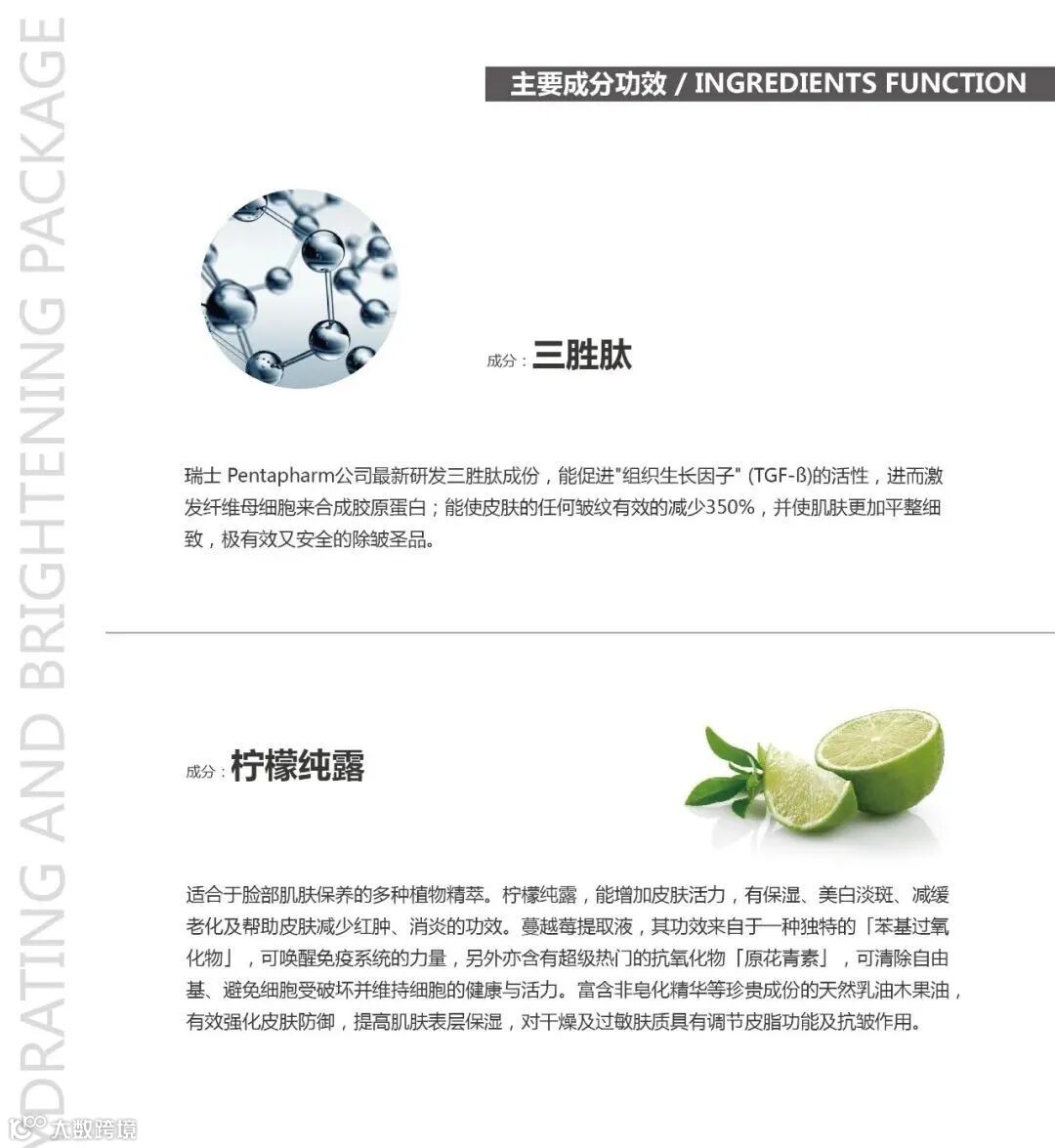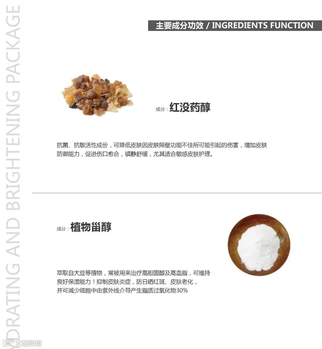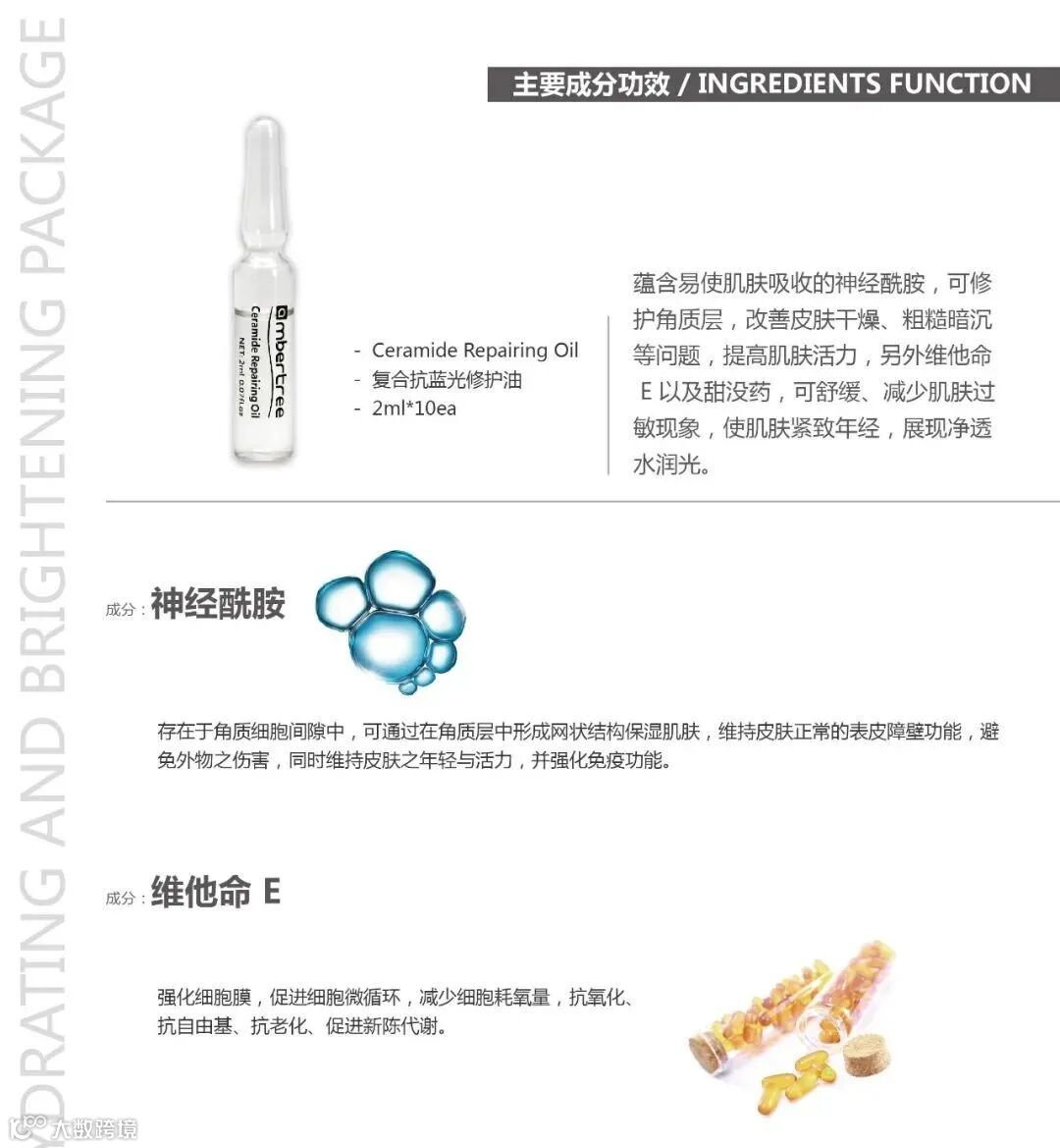 蕴含丰富神经酰胺、分子量极低的玻尿酸和海洋深层矿物精华,凭借优异渗透性能深层补充水分,促进细胞平衡,持续致润亦全面修复,是严重缺水、干纹细纹、敏感肌肤的高端管理选择。玻尿酸胜肽可促进真皮层内玻尿酸生成,配上维他命成分及超多种草植萃取,强化抗氧抗衰,提升肌肤质感,使肌肤即刻呈现水润弹性光泽。