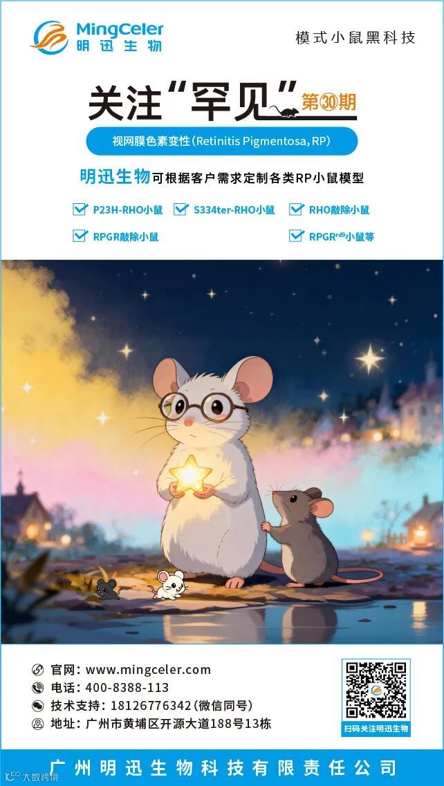 明迅生物可根据客户需求定制各类RP小鼠模型,如P23H-RHO小鼠、S334ter-RHO小鼠、RHO敲除小鼠、RPGR敲除小鼠、RPGRrd9小鼠等,欢迎各位老师前来咨询。