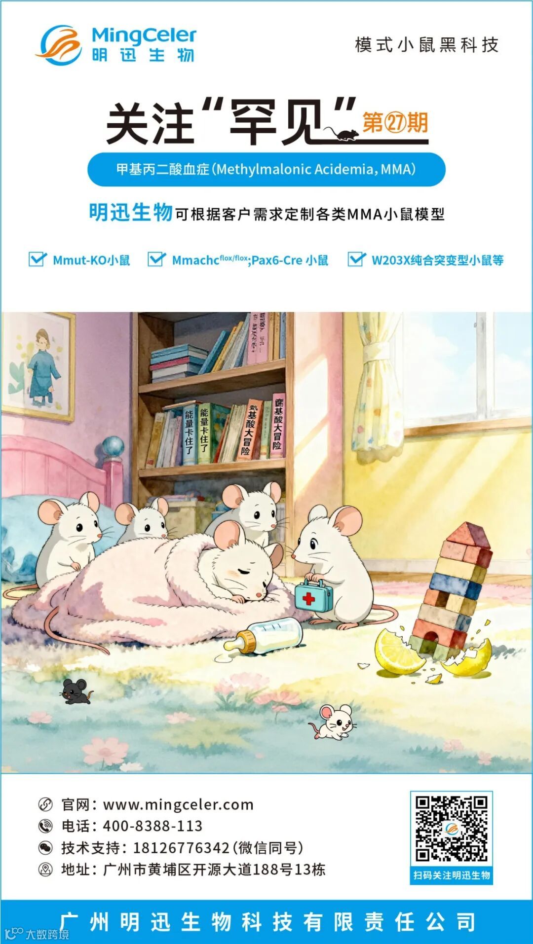 明迅生物可根据客户需求定制各类MMA小鼠模型,如Mmut-KO小鼠、Mmachcflox/flox;Pax6-Cre 小鼠、W203X纯合突变小鼠等,欢迎各位老师来咨询。