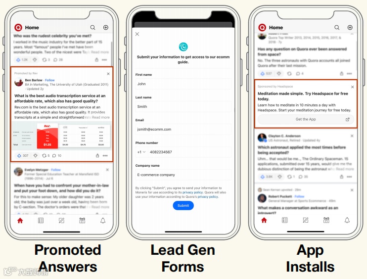 Quora Ads以多元化广告形式覆盖销售漏斗全过程