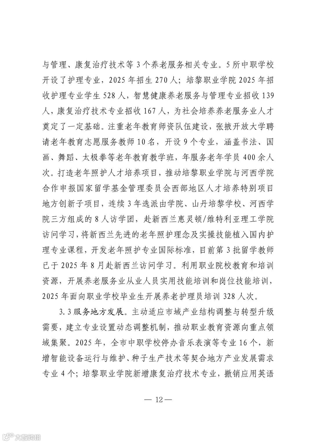 聚焦行业企业需求,培养养老服务等专业人才,开展相关培训328人次。动态调整专业结构,新增专业紧密契合地方产业,助力地方产业转型升级,为地方经济发展注入新动力。