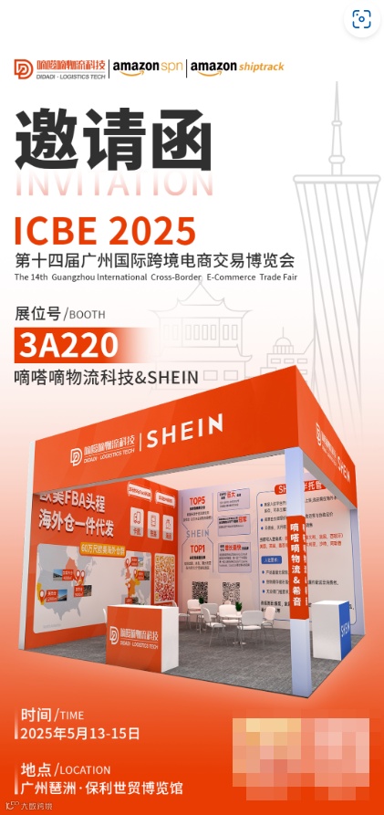 嘀嗒嘀物流科技×SHEIN 联展将于2025年5月13日-15日诚邀您参与ICBE 2025第十四届广州国际跨境电商交易博览会。