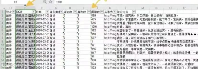 输入任意1个宝贝链接,点击【评语+图片】,可以一键下载宝贝的所有买家秀照片!下方找到打包图片,就可以把所有买家秀下载下来,下载评语后,还可以帮你按照SKU款式,把阅读高、点赞高的评价和图片找到,整整齐齐打包在表格,省时又省心