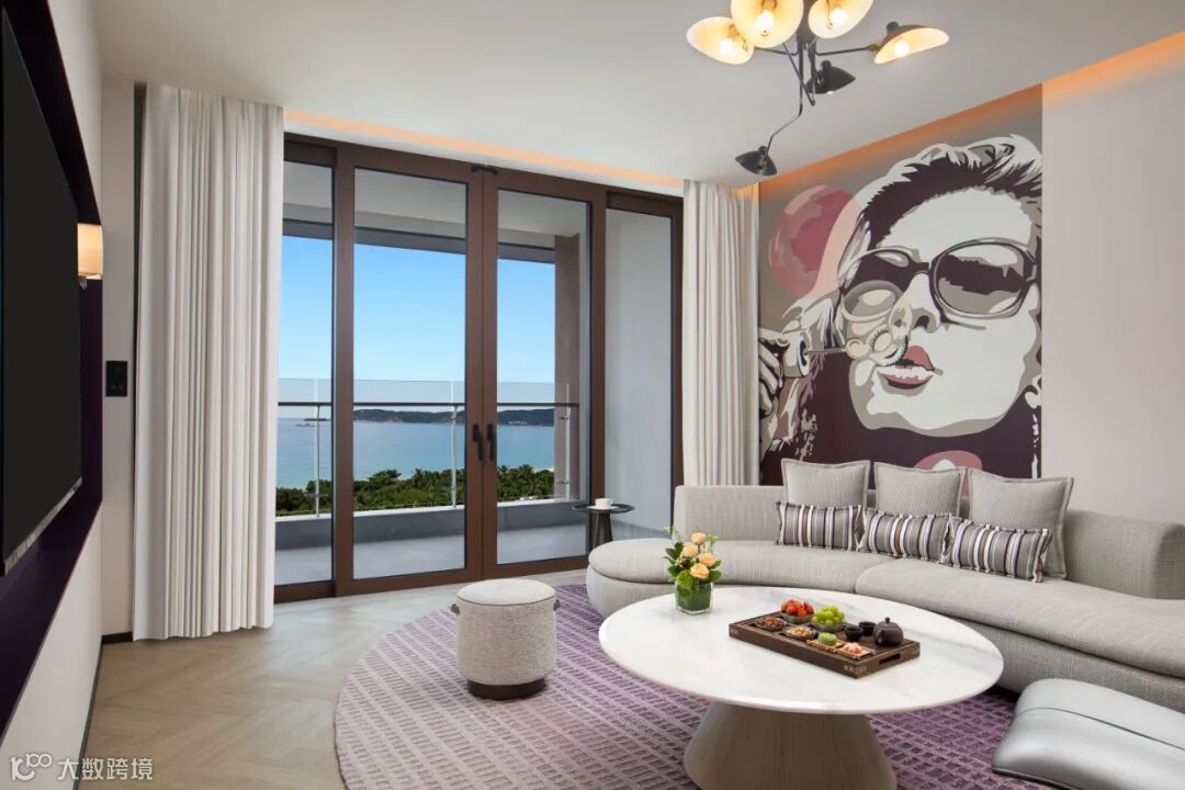 酒店拥有222间融合新中式美学的客房与别墅,其中包括70间亲子主题房。整体采用雅致沙红色调,结合现代简约风格,展现当代中华美学精髓。每间客房均配备开放式景观阳台,可饱览山、海、湖景致,并提供多款精选茶饮及定制中式茶具,提升居住仪式感。