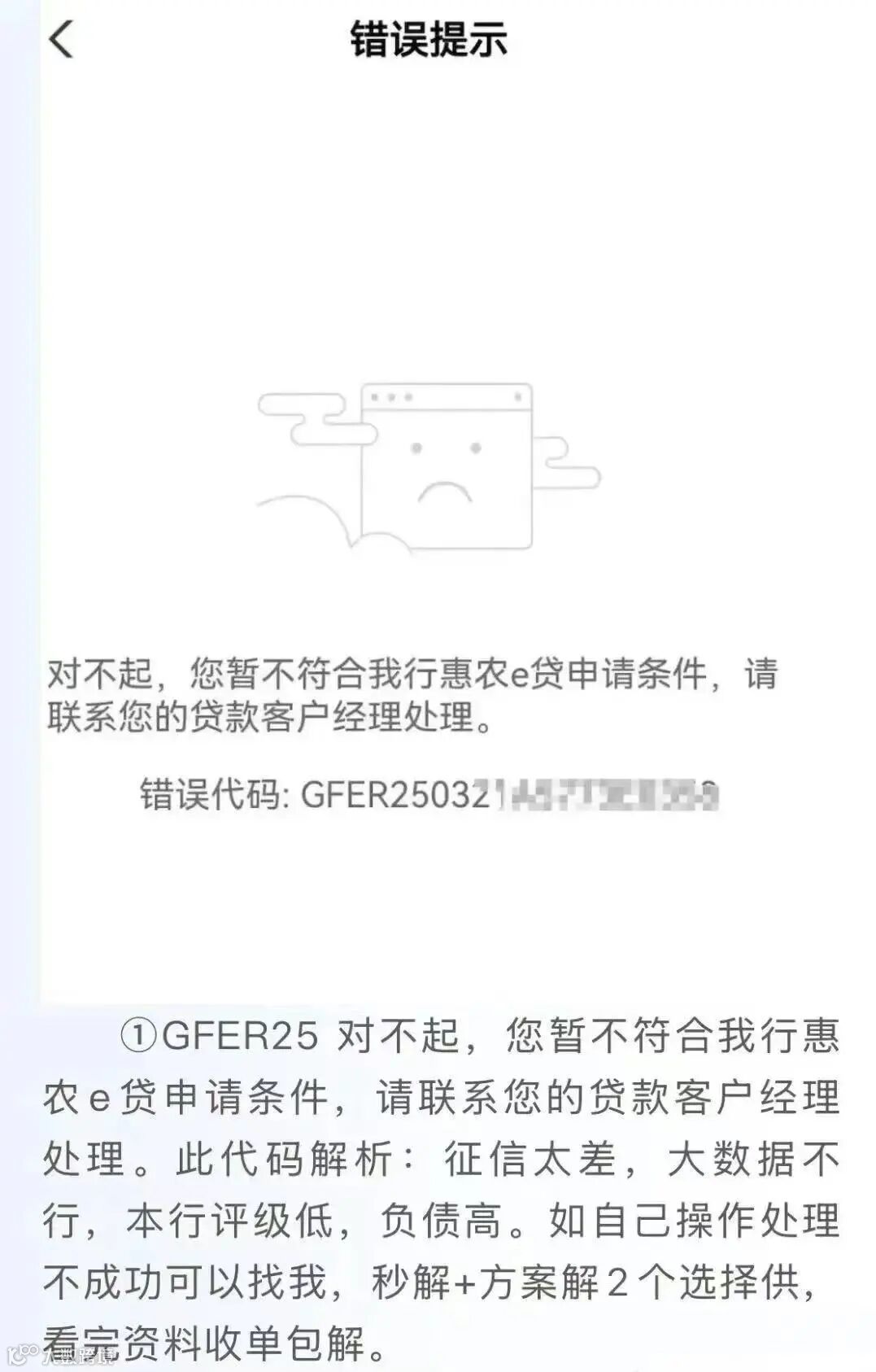 七,GFER25+月日+一串乱码,对不起,您的贷款基本信息异常,请联系您的贷款客户经理处理。