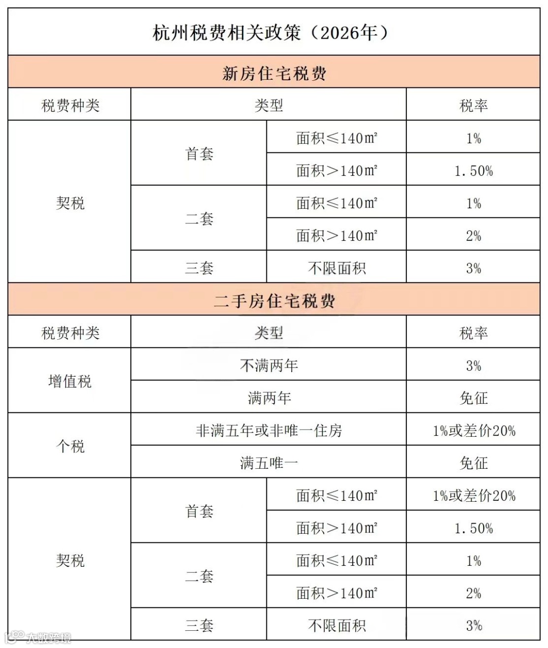 杭州的购房税费主要涉及三项:契税、个税和增值税。新房只需缴纳契税,二手房则均有涉及。
