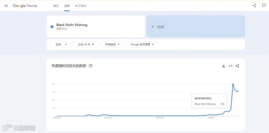 根据Google Trends显示关键词【Black Myth: Wukong】在8月20日搜索量激增,除了中国以外,美国、日本、中国台湾和加拿大地区的流量是比较高的。