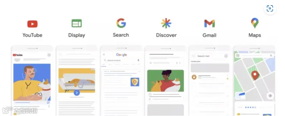 主要面向谷歌搜索、YouTube、Google Display Network、Google Discover、Gmail 和 Google Maps 上的广告资源,覆盖面更广。