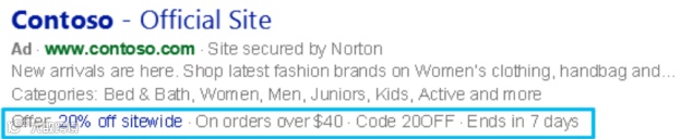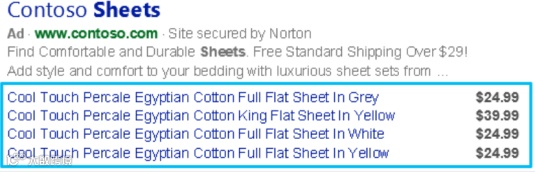 自动化动态产品:自动动态产品扩展会将您的文本广告的关键字与您的产品广告目录数据进行匹配,自动在文本广告中显示相关的产品优惠。您必须拥有一个活跃的Bing购物活动网络产品数据源,才能显示自动动态产品扩展,并且不能启用动态产品扩展。