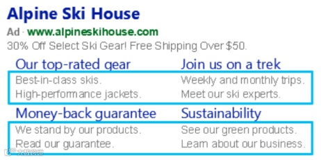动态站点链接:在您的广告底部显示动态网站链接扩展,这些是指向您网站其他页面的链接。这为客户提供了另一种评估您的网站所提供内容的方式。