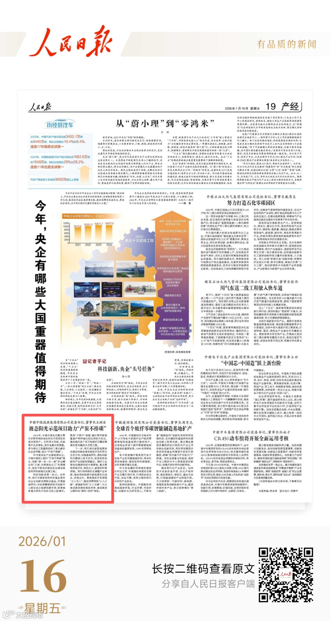 编者按:1月16日,《人民日报》在“今年,央企有哪些大国重器值得期待”专题报道中,刊发了中国中煤党委书记、董事长王树东的署名文章《液态阳光示范项目助力“产炭不排碳”》。文中重点介绍了,中国中煤深入践行“产炭不排碳”理念,创新“煤—电—化—新”多业耦合和“少煤、无煤绿色化工”发展模式,坚定不移走好煤炭安全清洁高效利用和高端化发展之路的生动实践。现全文转载如下: