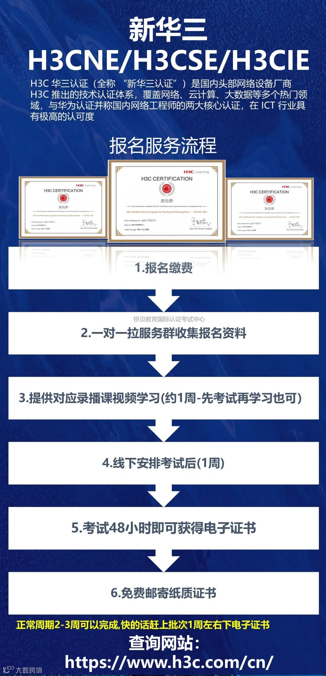 有效期:H3CNE/H3CSE 为 3 年,H3CIE 为 2 年 + 1 年缓冲期;