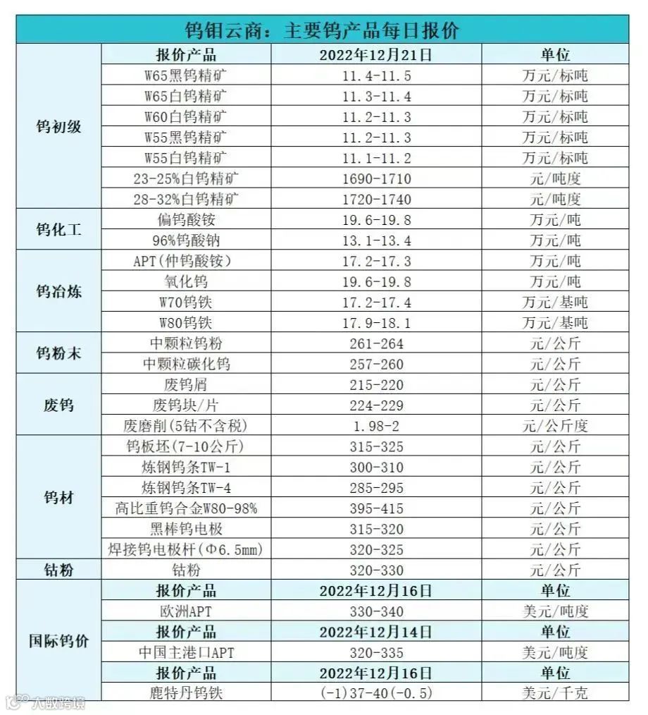 更多钨市资讯及市场变化请关注钨钼云商,欢迎加入钨钼云商琅琊阁微信会员群!