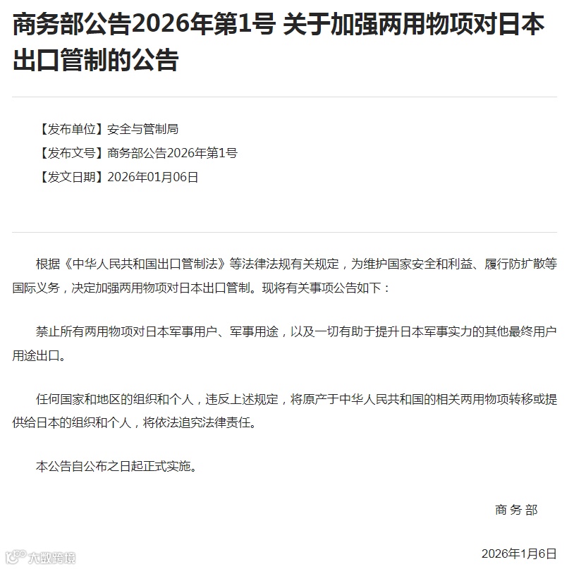 2026年1月6日,商务部发布关于加强两用物项对日本出口管制的公告,这将对中国钨出口有什么影响?(相关阅读:两用物项出口管制涉及钨钼产品品类)