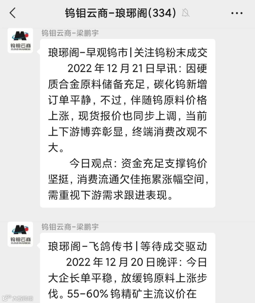 更多钨市资讯及市场变化请关注钨钼云商,欢迎加入钨钼云商琅琊阁微信会员群!