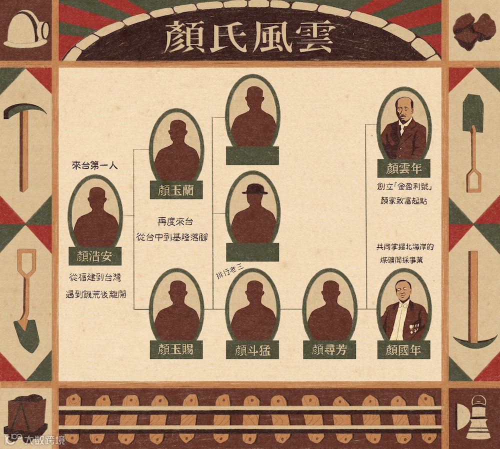 今日的中国台湾,虽已不再开采煤矿与金矿,但在百余年前,这两大产业曾在北台湾盛极一时,更造就了基隆颜家的财富传奇。与其他以大地主身份崛起的四大家族不同,基隆颜家凭借矿业与多项实业发展,跻身台湾五大家族之列。