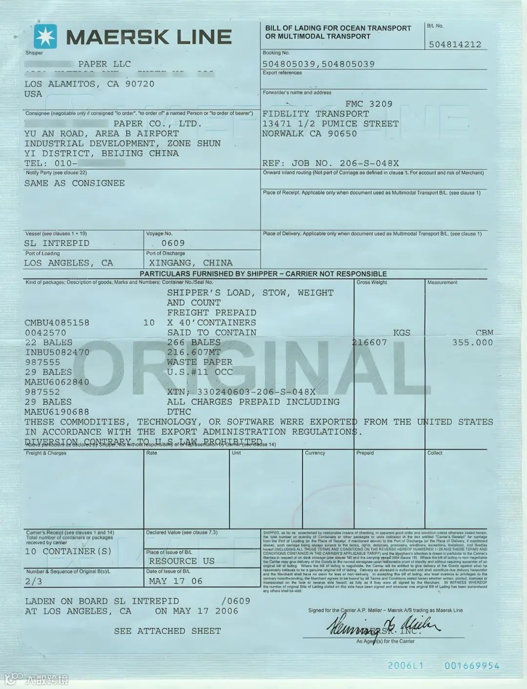 定义:是承运人签发给托运人的正式提单,注明有“Original”字样,具有物权凭证的作用。一套提单通常为“三正三副”,任意一份正本均可作为提货凭证,一般全套正本提单一起流转。