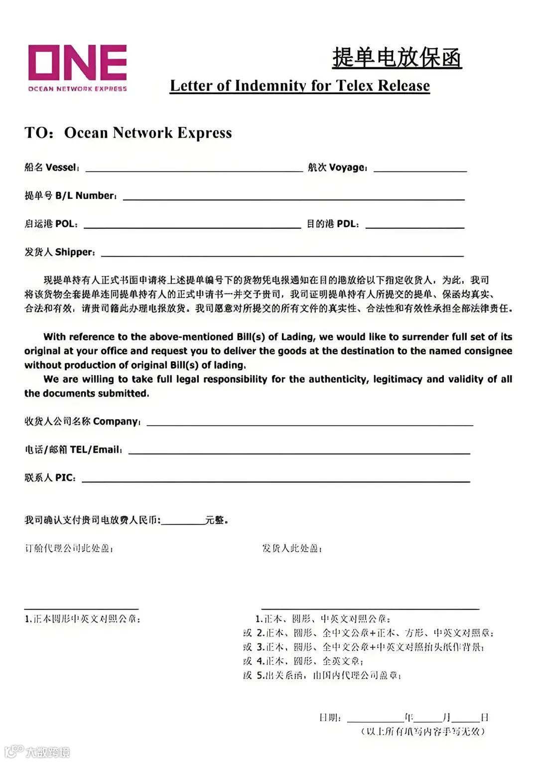 - 注有“电放(Surrendered, Telex Release)”字样,货权可通过电放回执转移。