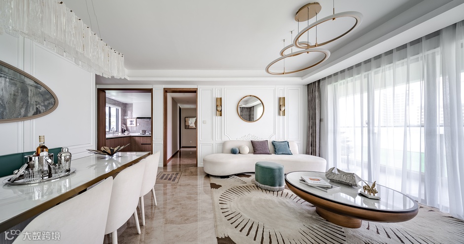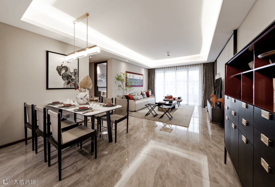从实际的生活场景出发,厨房、餐厅、客厅三位一体的动态生活区,是交友会客、全家互动的主要场所。