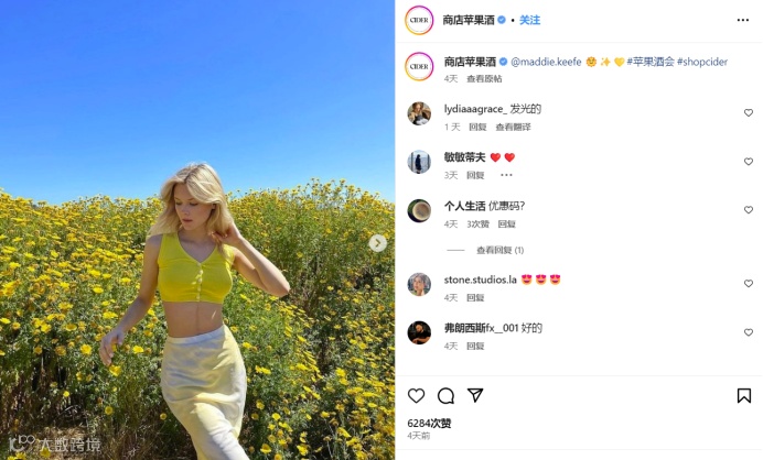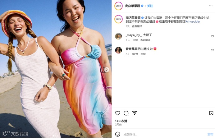 以快时尚品牌Cider为例,在最近的Instagram账号上发布了夏季新品帖子,帖子文案含夏季、沙滩、假期等关键词,清晰表达主题,引人注目,Instagram算法会将内容直接推荐给感兴趣用户,获得精准流量转化。