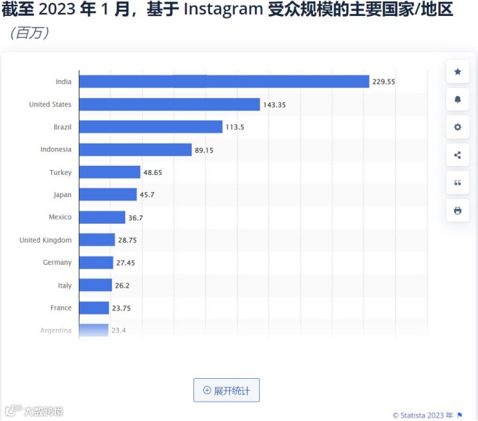 根据Statista数据显示,截至2023年1月,印度Instagram用户达2.29亿人,是全球Instagram用户最多的国家。