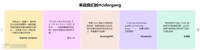 以cider为例,用户在购买产品后会分享到自己的Instagram账号和cider社区,cider会抽取用户的评论反馈发布在官方账号上,并@此用户。