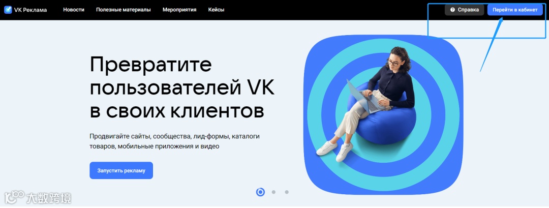 然后,我们进入VK广告页面,也可以前往https://ads.vk.com/并点击登录。不过,如果要创建公司帐户,建议卖家们不要使用个人VK ID、邮件、电话号码信息。一个法律实体可以创建多个VK Ads帐户。