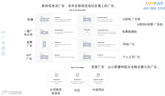 据了解,VK具有视频广告、社区广告、新闻信息流广告等多种形式,广告主也可以选择按照展示次数或点击率计费,预算设置灵活。