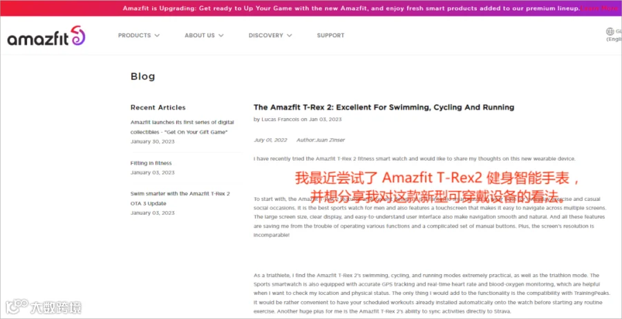 Amazfit的网站还有一个Blog内容营销板块,在这里,消费者可以分享自己使用Amazfit产品的感受、自己与Amazfit的故事以及其他相关内容。例如,有的消费者会分享自己的减肥历程。