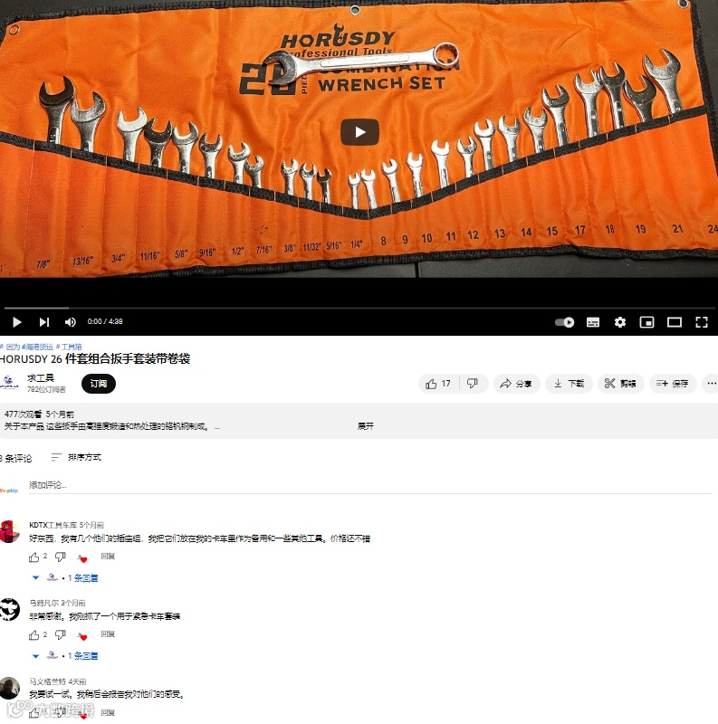 搜索可以发现,在YouTube上有很多关于HORUSDY产品的测评视频,且评论中有很多积极评价和“种草”评论。