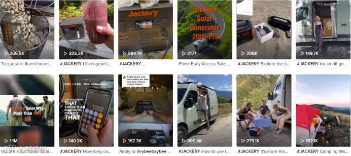 网络时代之下,在社交媒体上对于产品使用的展示和记录,为Jackery吸引大批流量和销量,扩大了其品牌在便携能源市场的知名度。