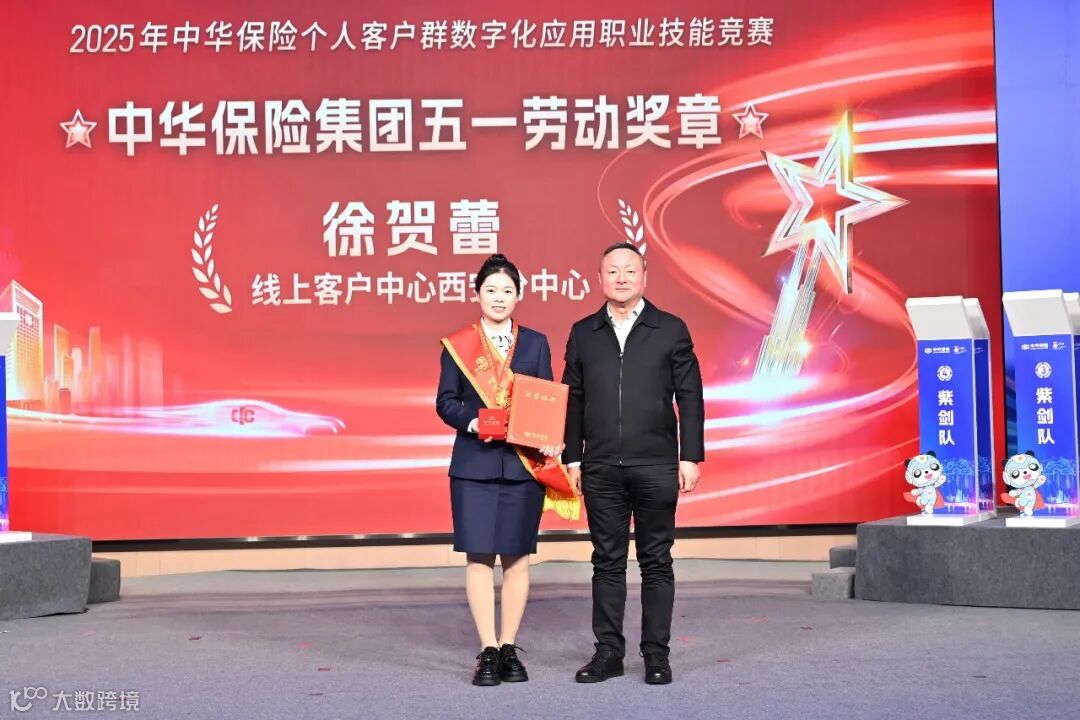 自竞赛启动以来,覆盖个客群团队1.2万人,全系统2000余名员工参与了本次竞赛。经过多轮选拔,最终16名选手脱颖而出,跻身决赛,展开了一场智慧与技能的巅峰较量。决赛通过知识竞答、实战案例、开放论述等多个环节,全方位考验了参赛选手的专业素养、业务技能、实战经验及综合素养。经过激烈的比拼,“黄剑队”获“优秀团队一等奖”,中华财险线上客户中心西安分中心徐贺蕾获个人第一名,并获颁发首次设立的“中华保险集团五一劳动奖章”。
