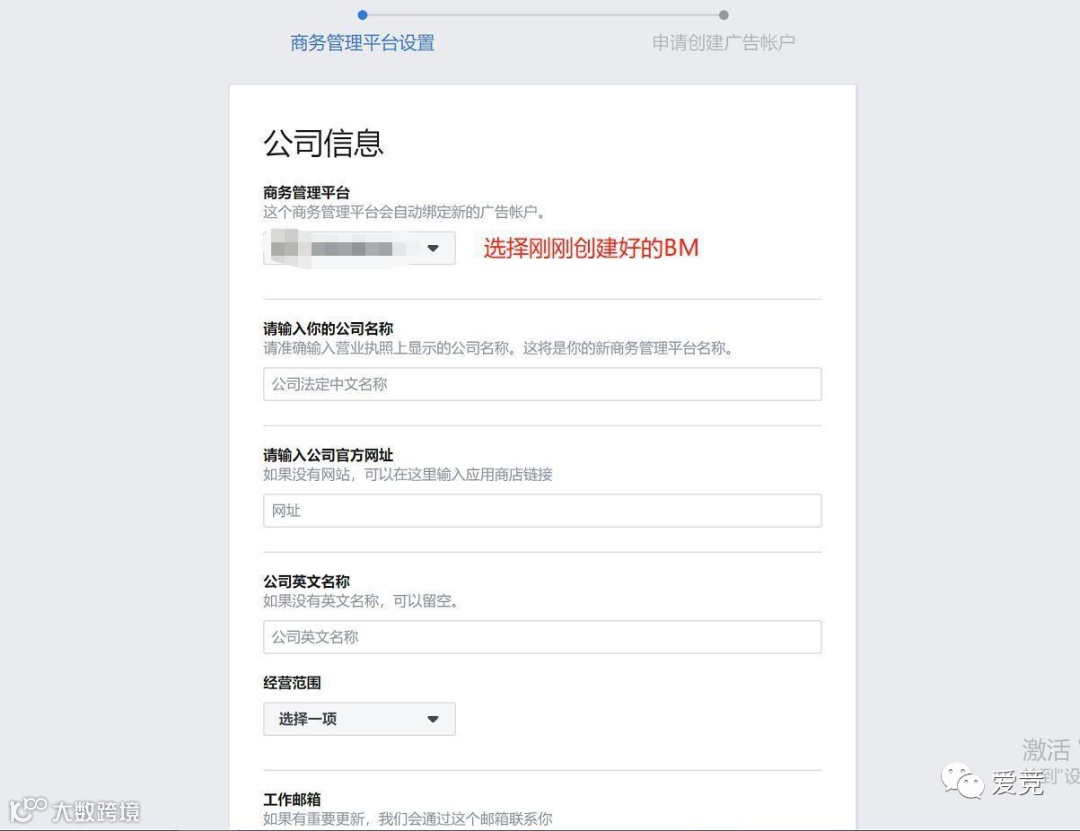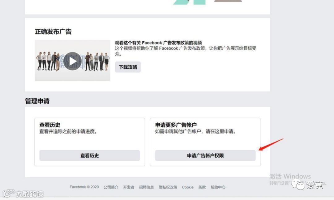 点击Facebook代理给的Facebook开户OE链接:然后点击申请广告账户