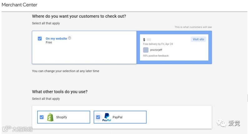 2、“你希望客户在哪里结账?”,勾选“on my website”,如果使用的是Shopify和 PayPal,则二者也勾选。