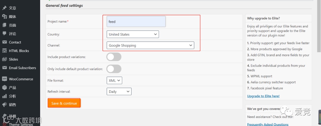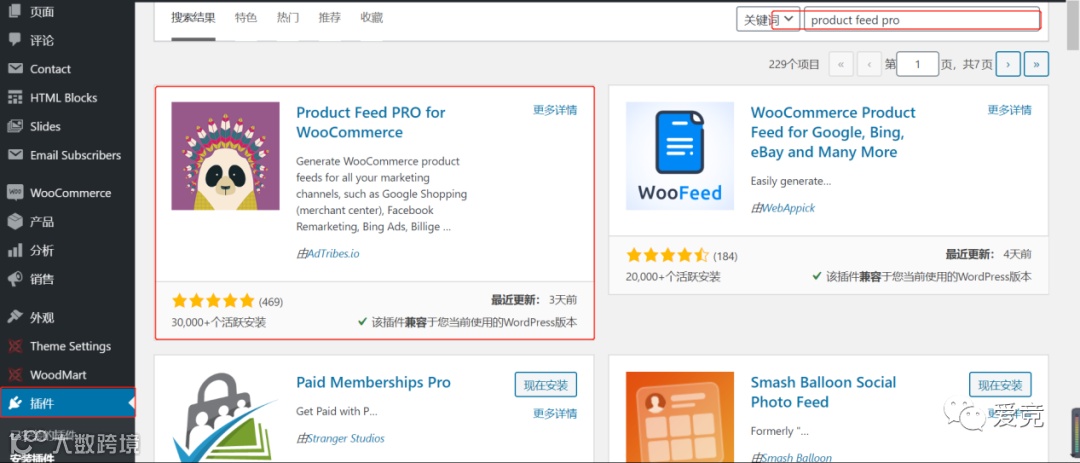 在wordpress的后台安装 product feed pro for woocommerce插件