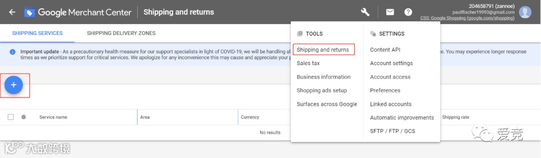 2、运费设置。依次点击工具(扳手)-送货和退货-按钮➕号以创建配送服务。