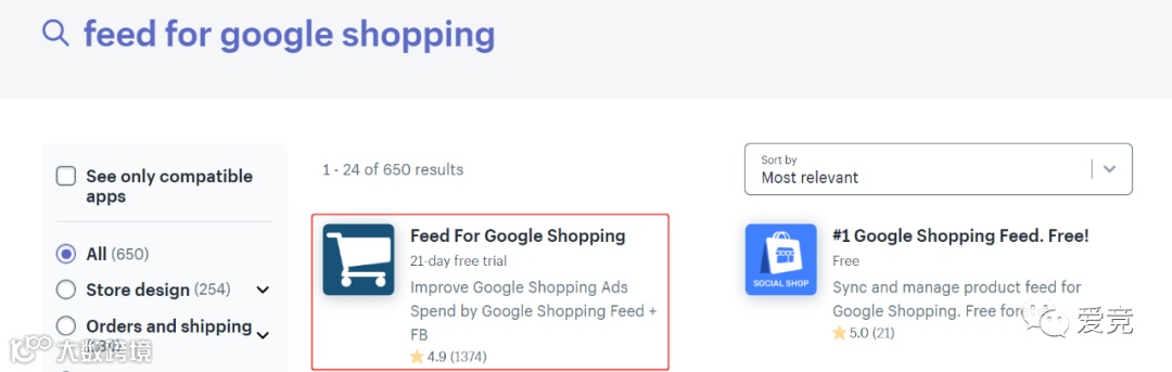 进入shopify后台,依次点击APPS-APP STORE -搜索feed for google shopping