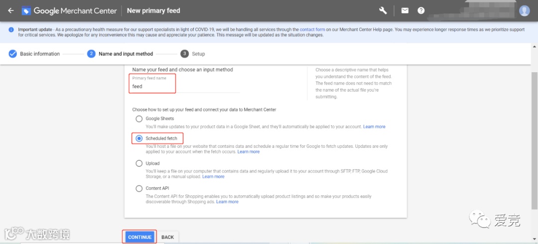 对feed进行命名,选择scheduled fetch,点击继续