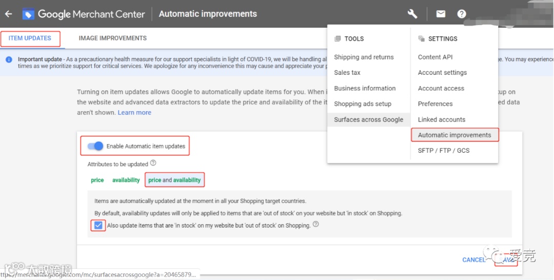 依次点击自动改进-启用商品自动更新功能-选择价格和库存状况-勾选自动更新功能-点击保存;