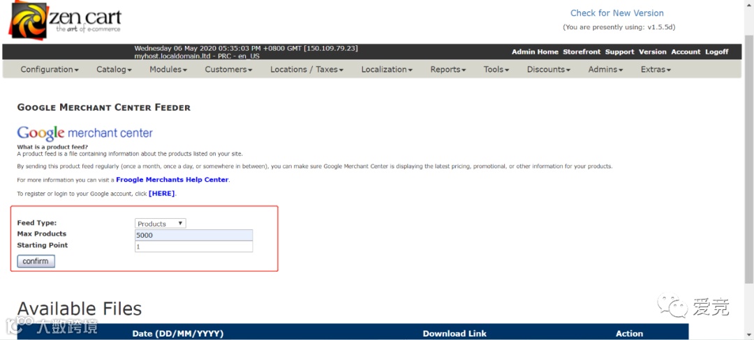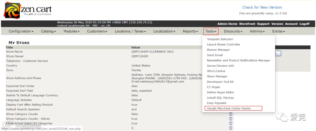 进入zencart后台,依次点击Tools-Google Merchant Center Feeder